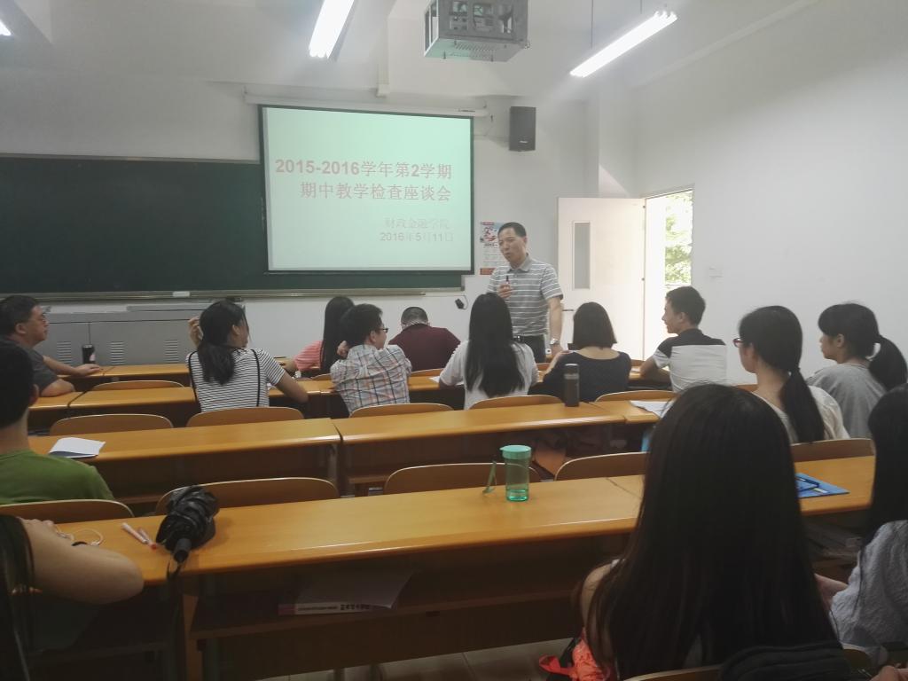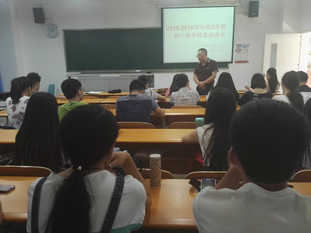 为了提高教学质量、树立良好学风,财政bat365中文官方网站2015-2016学年第二学期期中教学检查座谈会于5月11日中午在田家炳书院50311举行。bat365中文官方网站财政bat365中文官方网站常务副院长莫云、校督导专家樊国昌、院督导专家张理平、唐晓玲、朱沙,以及院教务办老师刘海英、谭会敏老师共同出席了本次座谈会。