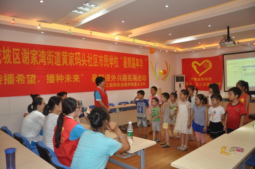 7月7日上午九点,bat365中文官方网站财政bat365中文官方网站“星火”义协和学生会的志愿者们一起来到位于谢家湾街道的黄家码头社区,共同开展兴趣课堂活动。据悉,本次活动校党委副书记、纪委书记周航、校团委副书记杨娟和校团委陆嘉老师莅临市民学校,对市民学校的志愿者们的工作给于关心与慰问。