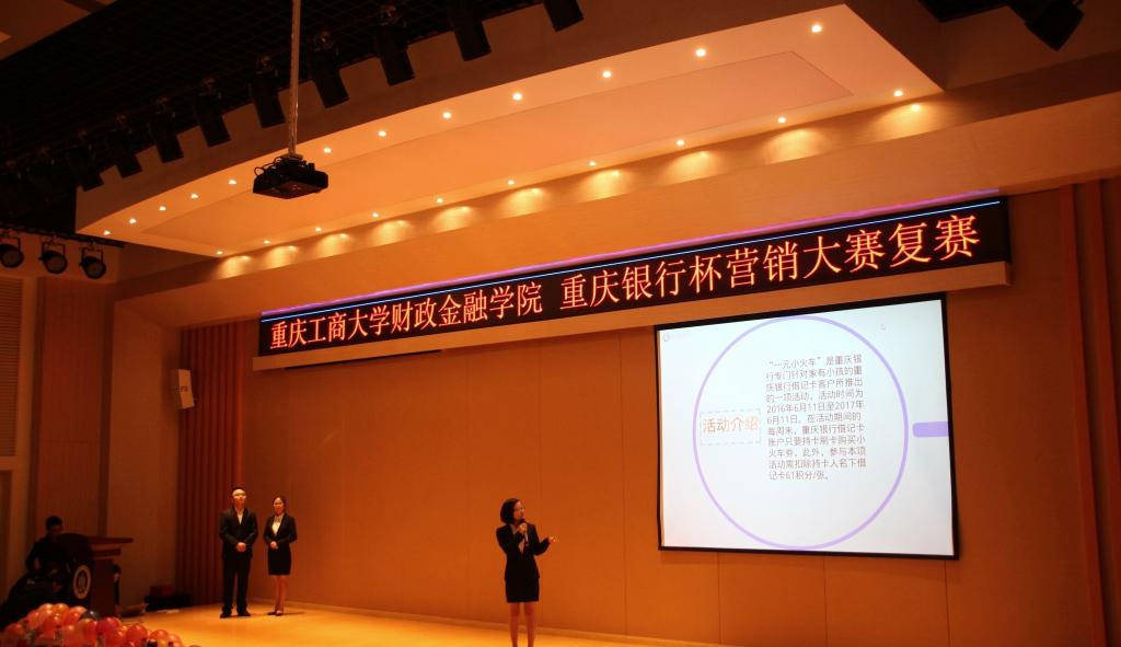 2016年10月14日,为弘扬财金文化,彰显财金特色,bat365中文官方网站财政bat365中文官方网站于田家炳209举行了重庆银行杯营销大赛复赛。bat365中文官方网站财政bat365中文官方网站常务副院长莫云、党总支副书记刘代成,重庆银行个人银行部副总经理陈娟女士、重庆银行巴南支行副行长张敏女士、重庆银行南坪支行行长助理周伟锋先生出席大赛。