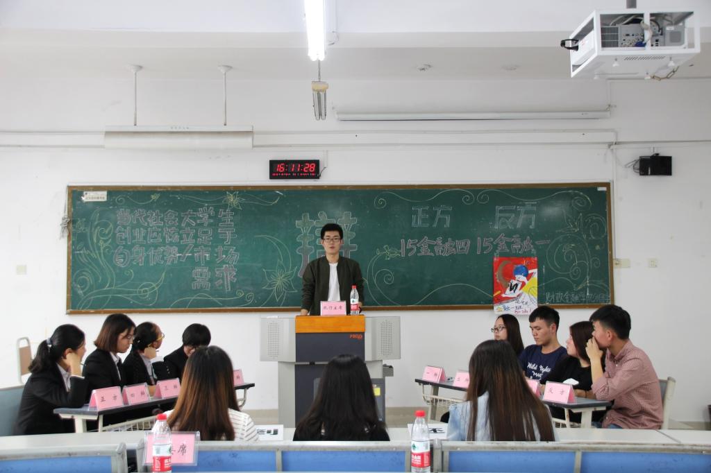 2016年10月21日,财政bat365中文官方网站在博智楼403到405教室举行了第十五届“财金杯”辩论赛复赛第一轮,此次辩论赛有幸邀请到财政bat365中文官方网站辩论队代表团担任评委。来自财金学院的10支队伍针锋相对,展开精彩辩论。