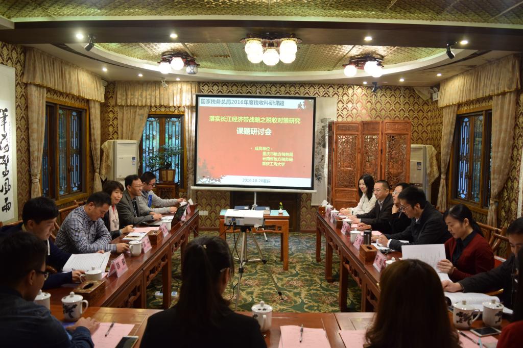 2016年10月28日上午,《落实长江经济带战略之税收对策研究》课题研讨会在我校南山书院成功召开。参加本次研讨会的有重庆市地税局政策法规处田野处长、云南省地税局调研室杜一峰主任、云阳县地方税务局安然局长、重庆市地税局政策法规处吴梅副处长、bat365中文官方网站财政bat365中文官方网站课题组成员等20余人。