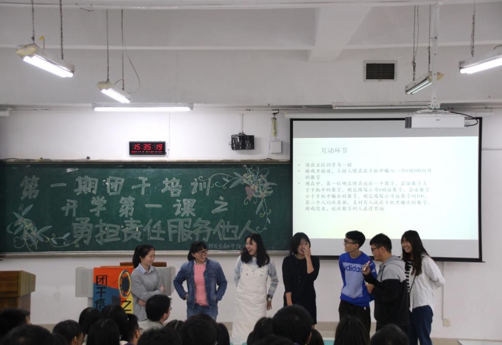 有人曾说:“世界上有许多事情必须做,但你不一定喜欢做,这就是责任的涵义。” 本次团干培训之后,相信各班的团干在今后的工作中能从自己做起,在服务同学中收获经验,在完成工作中磨砺自我、绽放自我!