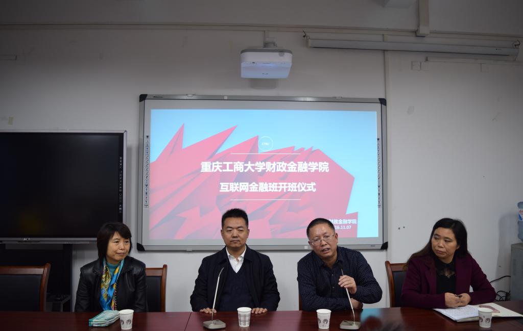2016年11月7日下午15:30,bat365中文官方网站财政bat365中文官方网站首届互联网金融班开班仪式在南岸校区田家炳313会议室举行。重庆市金融发展中心主任张洪铭、财政bat365中文官方网站党总支书记杨萍、常务副院长莫云、金融系主任许世琴、分团委书记徐阔出席此次开班仪式。