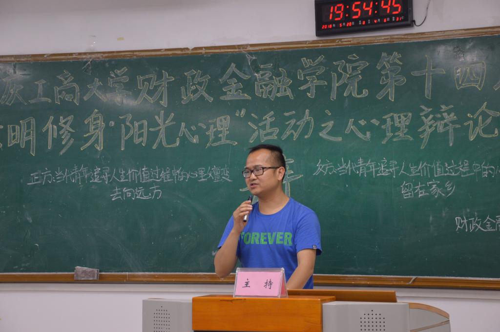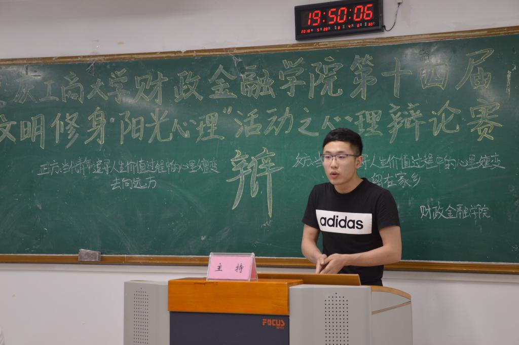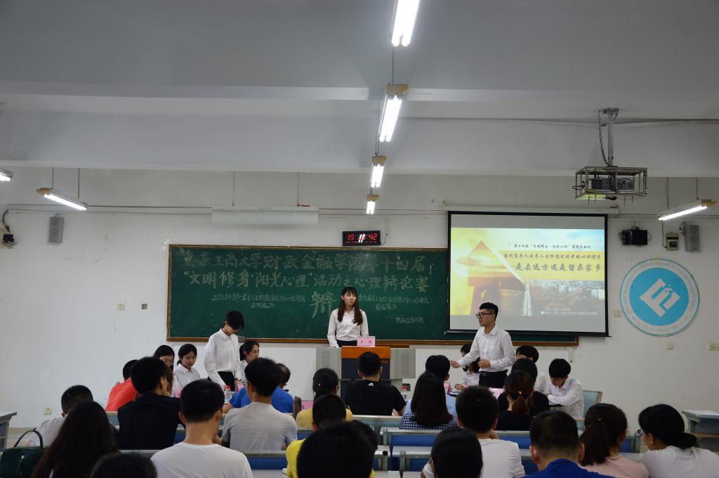 为推动我校学生心理健康工作的发展,营造积极向上的校园文化氛围,bat365中文官方网站财政bat365中文官方网站于2018年5月20日19点在博智楼07405举办了第十四届“文明修身·阳光心理”系列活动之心理辩论赛。财政bat365中文官方网站研究生党支部书记杨宁老师和学生第一党支部书记文理老师莅临比赛现场,bat365中文官方网站校辩论队队长张桂旗、国际商学院辩论队队长黄雯以及会计学院辩论队队长谭智杰担任本次比赛的评委。