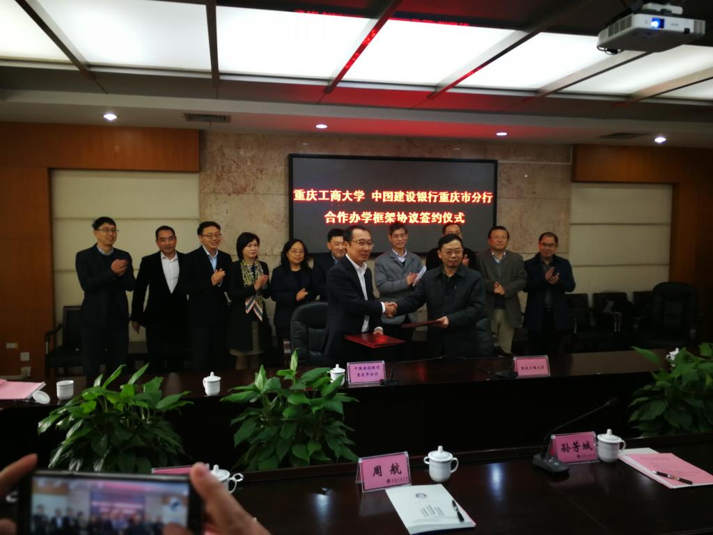 11月28日,在我校厚德楼3019会议室,我校与中国建设银行重庆分行举办了合作办学框架协议暨“实践教学基地”授牌仪式。出席本次签约仪式的有中国建设银行重庆分行党委副书记、副行长熊刚先生、纪委书记徐鹏先生,分行机构业务部、人力资源部等部门负责人,以及渝中支行、中山路支行负责人,我校校长孙芳城教授、纪委书记、财政bat365中文官方网站联系校领导周航教授,学校教务处、科研处、研究生院等部门负责人等出席了仪式。签约仪式由财政bat365中文官方网站院长刁孝华教授主持。