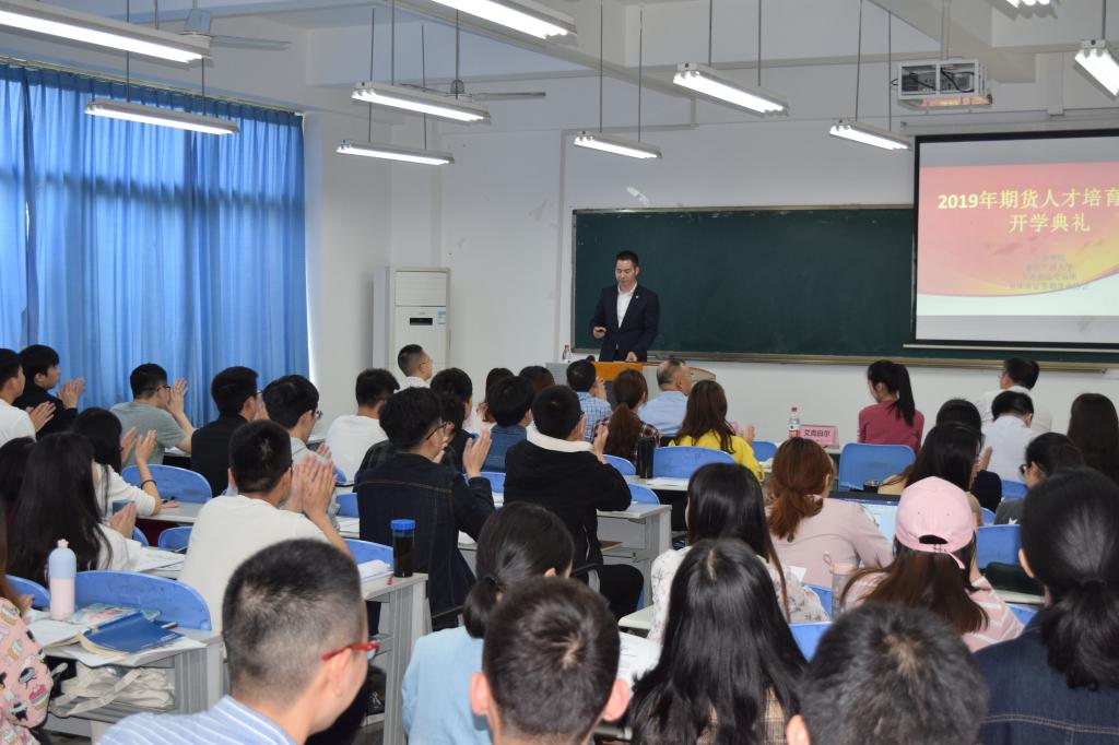 4月29日下午2:00,财政bat365中文官方网站在田家炳书院50306组织了“2019年期货人才培育项目开学典礼”仪式。学院副院长曾胜教授主持,原中国期货业协会专职副会长李强、财政bat365中文官方网站院长刁孝华、大连商品交易所会员部艾克白尔,重庆证监局机构二处副调研员曹雁秋、重庆市证券期货业协会秘书长王跃、重庆市证券期货业协会培训班主任朱佳,学院部分专任教师和参与此次项目的2018级金融专业研究生等100余人出席了开班典礼。仪式由学院副院长曾胜主持。