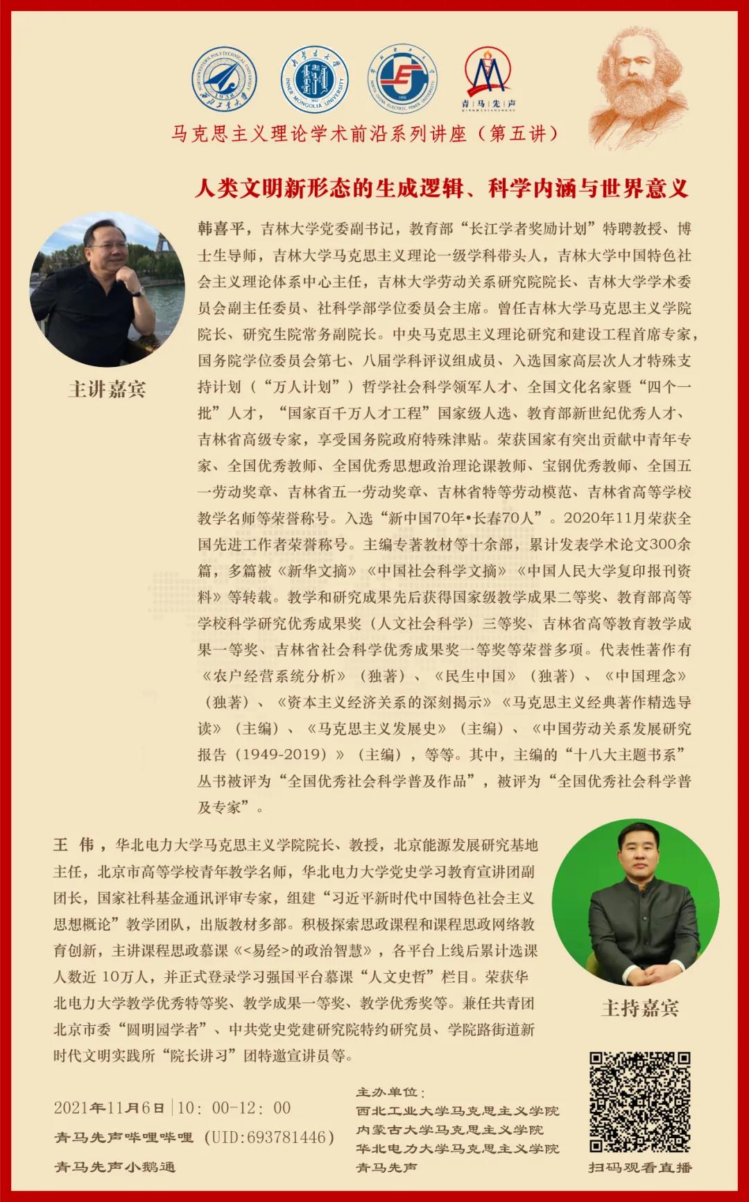 为了进一步彰显马克思主义理论的当代价值、准确捕捉学术研究的前沿动态、加强马克思主义理论宣传、谱写马克思主义理论学科新的光辉篇章。由必赢242net官网、内蒙古大学必赢242net官网、华北电力大学必赢242net官网、青马先声联合主办“马克思主义理论学术前沿系列讲座”。