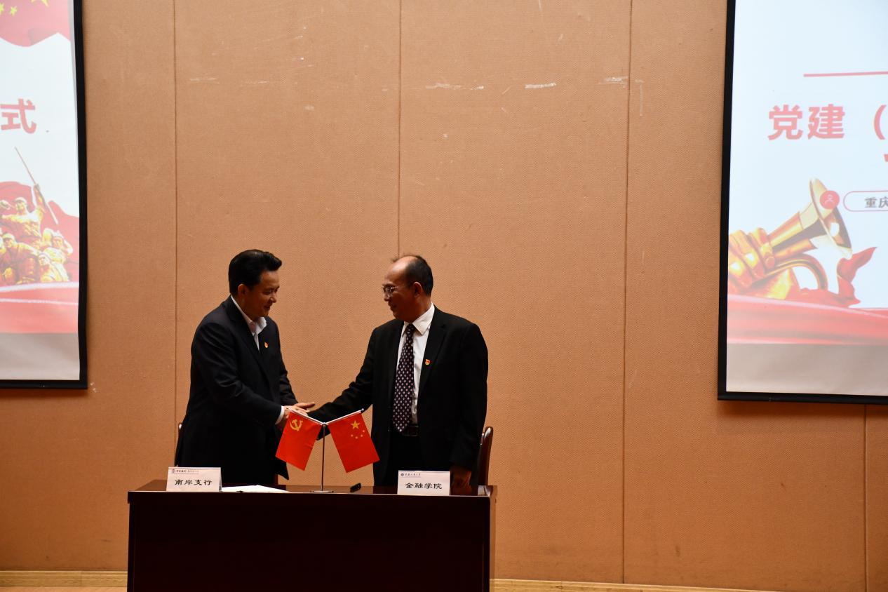 为庆祝中国共产党成立100周年,深入学习贯彻习近平总书记在党史学习教育动员大会上的重要讲话精神和在庆祝中国共产党成立100周年大会上的重要讲话精神,强化银校共建,助推融合发展,10月15日下午,bat365中文官方网站党委与中国银行重庆南岸支行党委在田家炳209报告厅联合开展党建(廉洁)共建暨百年百校主题活动。中国银行重庆南岸支行党委委员、副行长符代权、王霜,bat365中文官方网站党委书记、副院长王建明,党委副书记、纪委书记余新,党委委员、副院长庞楷,党委委员、专职组织员赵甫刚及各党支部书记出席了活动。活动由余新主持。