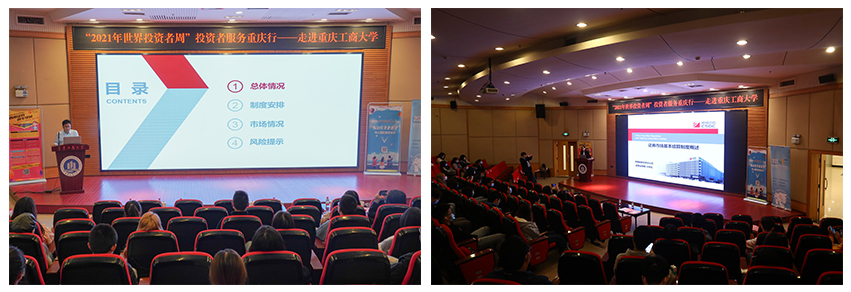 中国证券业协会、重庆证监局、西南证券与bat365中文官方网站签约为我校拓展校企协同育人提供了新的平台和契机。两位业界专家的授课更是为我校师生提供了一次难得的了解证券行业发展前沿的机会。本次投资者教育进校园活动持续了2个多小时,校外5个单位20余名业界精英参会,会议取得了圆满成功。