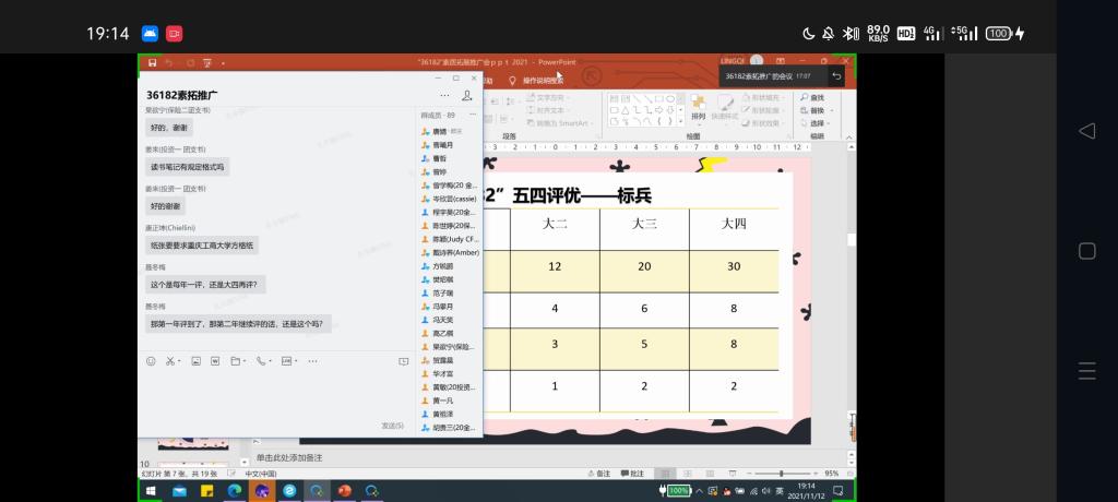 11月12日19时,bat365中文官方网站“36182”素质推广大会于企业微信线上顺利举行。本次推广大会由社会实践部负责人孔令旗主讲,bat365中文官方网站20级各班和21级CFA1班班长、团支书、组织委员、宣传委员参加了会议。