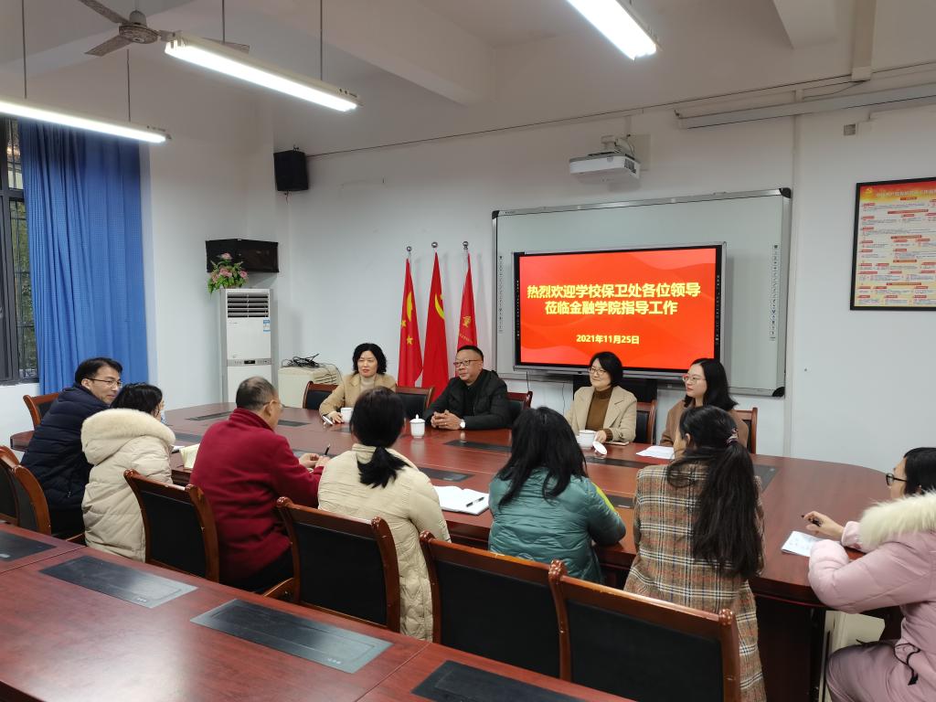 2021年11月25日下午,学校保卫处钱忠坤处长一行到bat365中文官方网站进行工作交流。bat365中文官方网站党委书记、副院长王建明,党委副书记、院长王兰,党委副书记、纪委书记余新,党委委员、副院长庞楷,党委委员、专职组织员赵甫刚和全体科级干部参加了会议。会议由王建明主持。