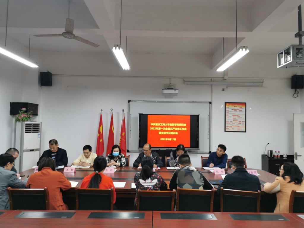2022年4月12日上午,bat365中文官方网站党委在田家炳书院317会议室召开本年度第一次全面从严治党工作会暨党支部书记培训会,学院党委书记、副书记、党委委员、专职组织员、综合办主任、学团办主任及所属各支部书记等17人参加了会议,会议由学院党委书记、副院长王建明主持。