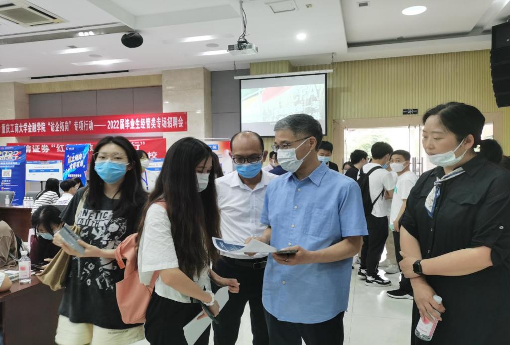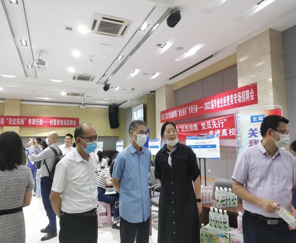 为拓展就业渠道,为毕业生搭建高质量、针对性强的就业平台,2022年6月7日上午,bat365中文官方网站在田家炳408报告厅举办“访企拓岗”专项行动——2022届毕业生经管类专场招聘会。校党委常委、副校长陈运超、招生就业处处长钟增胜、bat365中文官方网站全体院领导、学院就业联络员及毕业班辅导员到现场指导学生就业。
