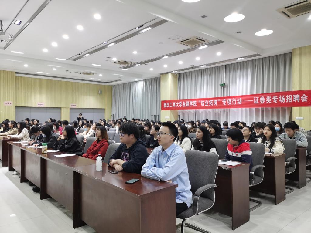 本次招聘会邀请到了财信证券、安信证券、五矿证券、国联证券和中信建投证券五家证券公司,为毕业生提供财富管理分析师、管理培训生等多个就业岗位和实习岗位,专业对口性强。此次招聘会备受毕业生关注,百余位同学通过网上渠道报名参加招聘会,更有几十位现场报名学生,会场上座无虚席,毕业生应聘积极性极高。