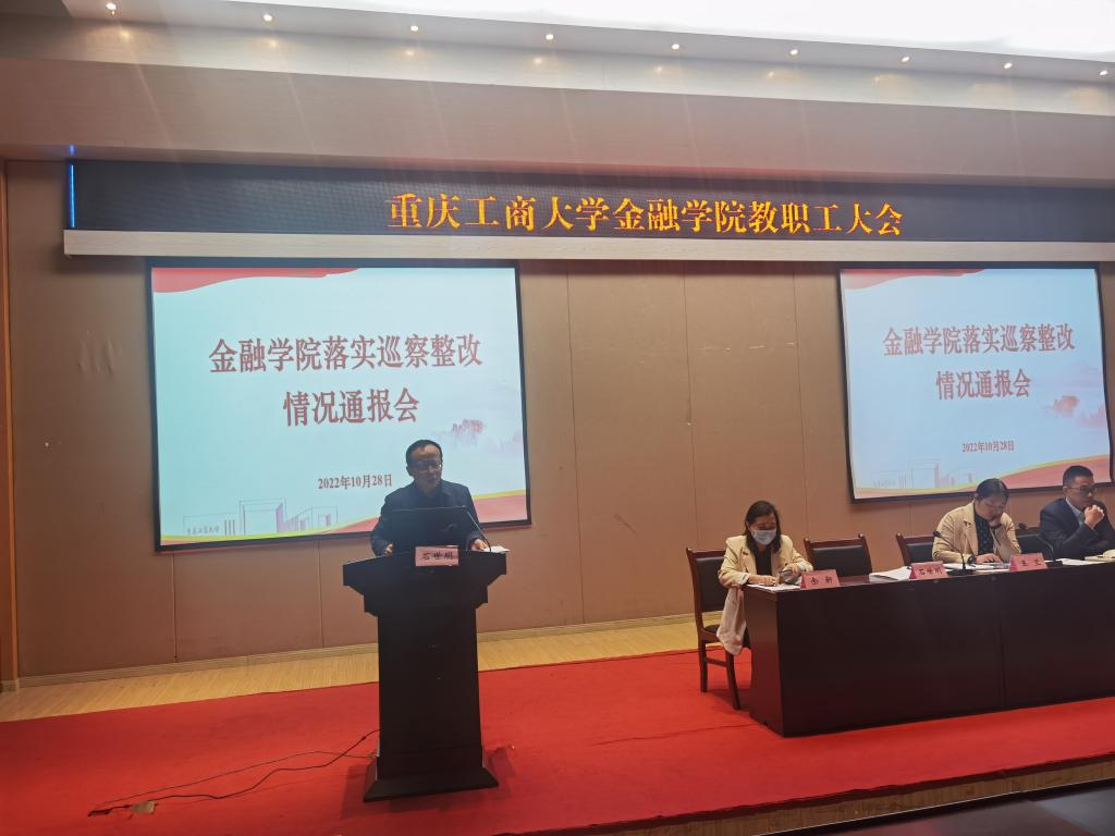 10月28日,bat365中文官方网站召开教职工大会,通报学院落实巡察反馈意见整改情况。学院全体干部职工参会,学院党委书记、副院长石世明同志主持会议。