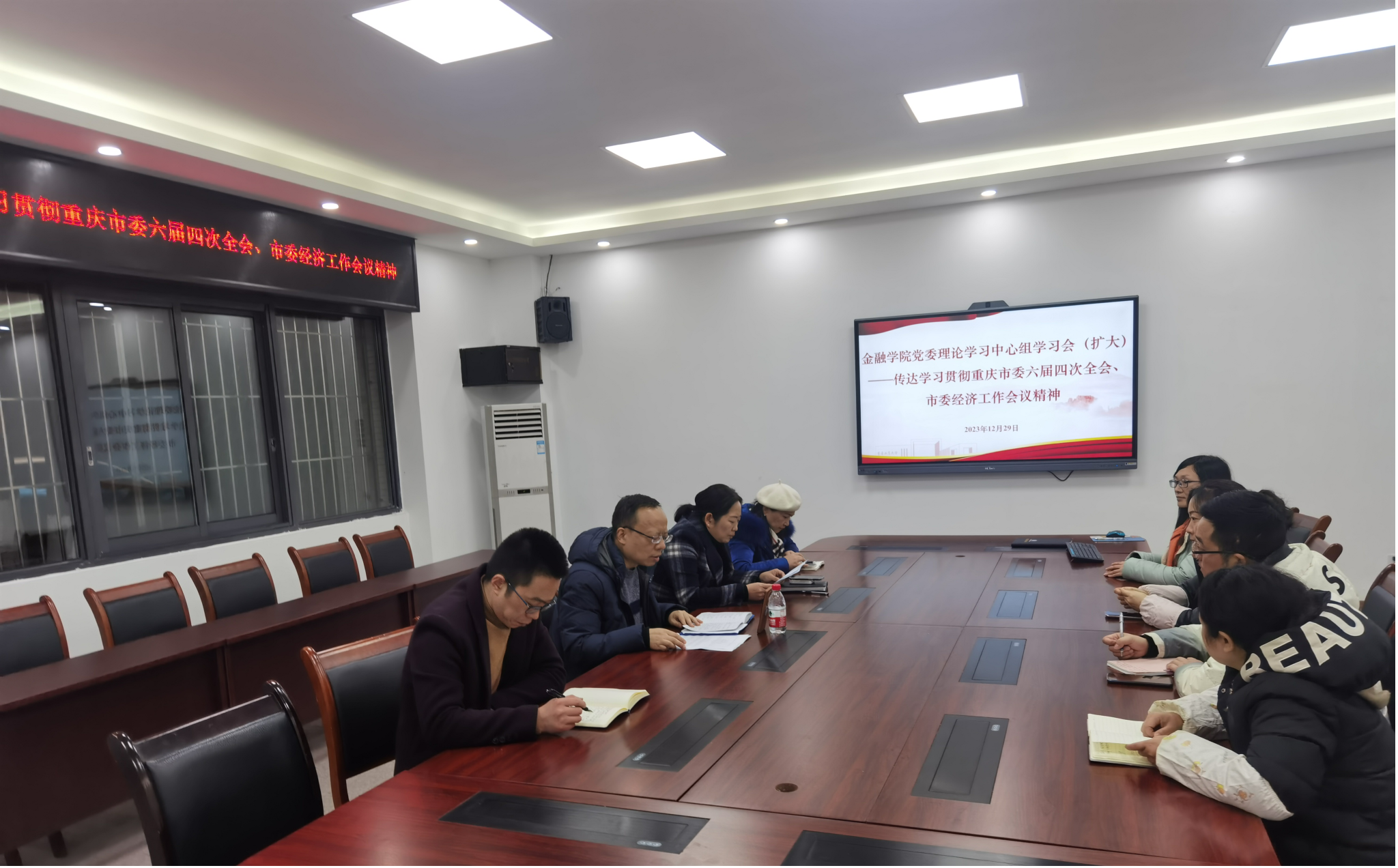 会上,大家通过学习学校党委书记曾维伦传达的市委六届四次全会、市委经济工作会议精神,纷纷表示作为高校基层党组织要将理论的学习转化为结合岗位的实际行动,努力推动学院的发展上来;要深化产学研用结合,在“三攻坚一盘活”中发挥好资政、研究和智库的作用;要深化教育教学改革,加强数字金融人才的培养,更好更快地服务实体经济发展。