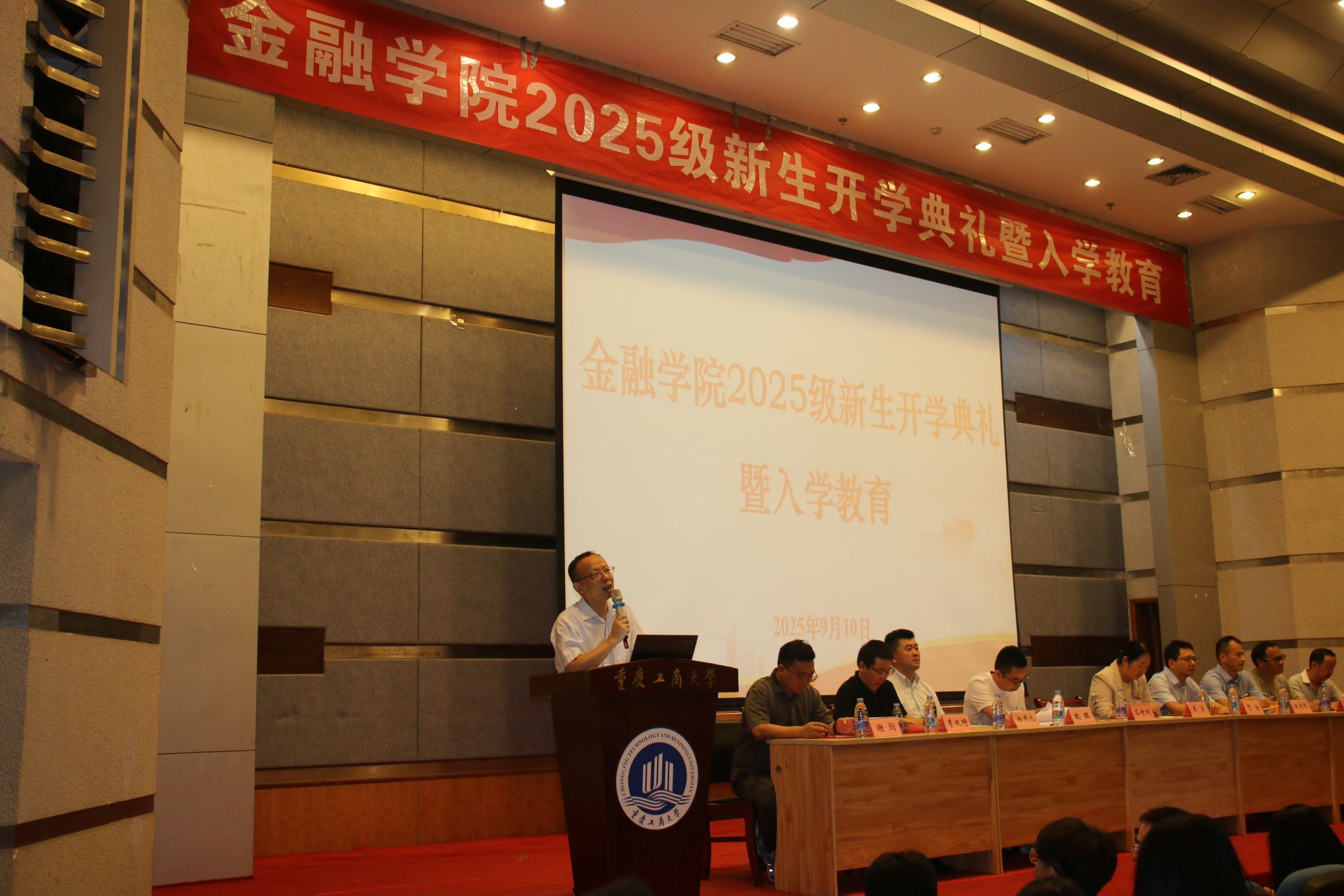 9月10日晚,bat365中文官方网站在7100报告厅举行了2025级本科生新生开学典礼暨入学教育。全体新生及部分新生家长、学院全体领导及部分教师代表参加了会议。会议由党委组织委员赵甫刚主持。