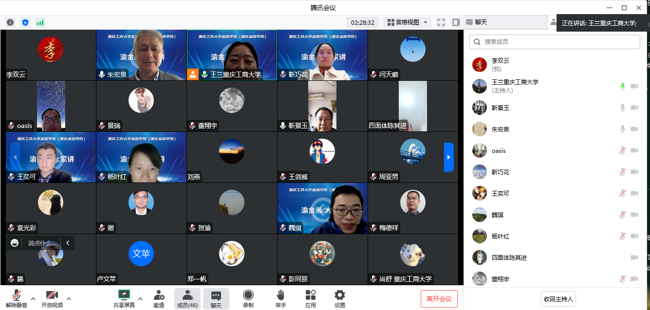 2022年12月4日,为了更好助力bat365中文官方网站老师们申报2023年国家自然科学基金项目,bat365中文官方网站bat365中文官方网站“渝金融·大家讲”学术论坛正式启动。本次论坛,bat365中文官方网站特邀西南交通大学经济管理学院副院长、博士生导师、国家自然科学基金、社会科学基金评审专家朱宏泉教授来到“渝金融·大家讲”云论坛,为广大教师作国家自然科学基金申报经验讲座,bat365中文官方网站及其他学院教师共计100余人参加论坛。本次会议由bat365中文官方网站院长王兰主持。