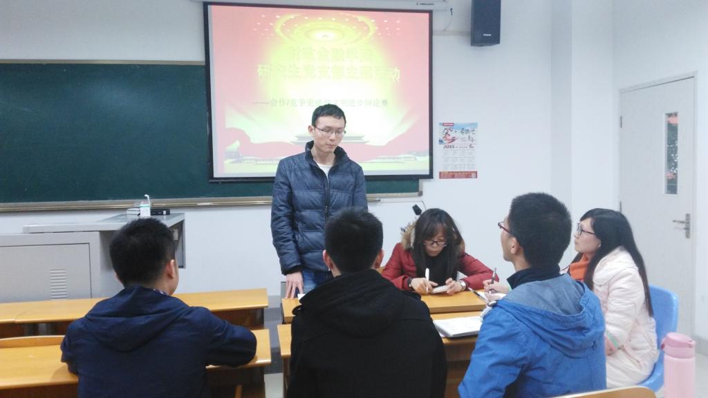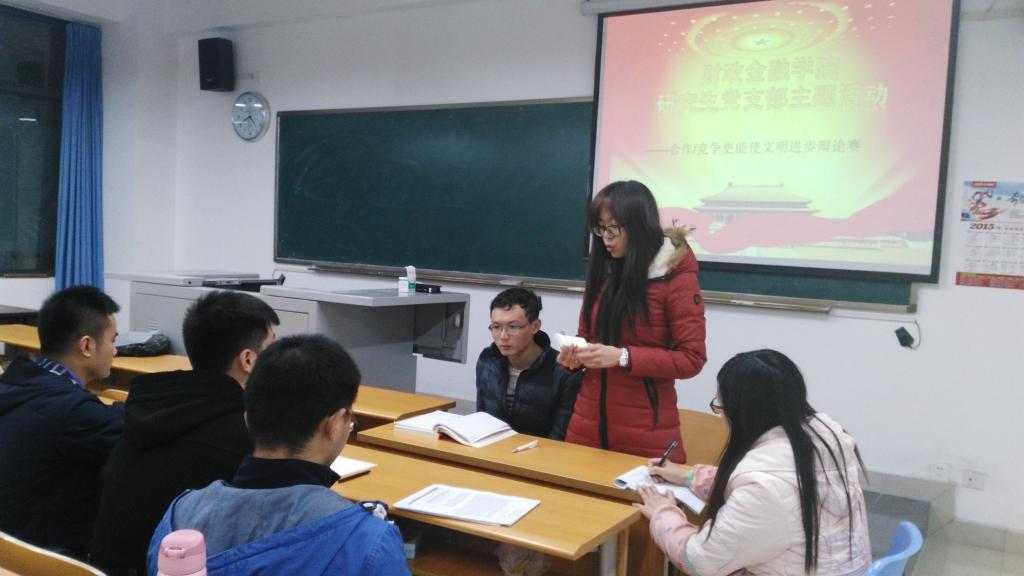 12月14日,财政bat365中文官方网站研究生党支部在田家炳书院311教室开展了题为“合作还是竞争更能使文明进步”的小型辩论赛。活动由党支部书记兰丽娟老师主持。
