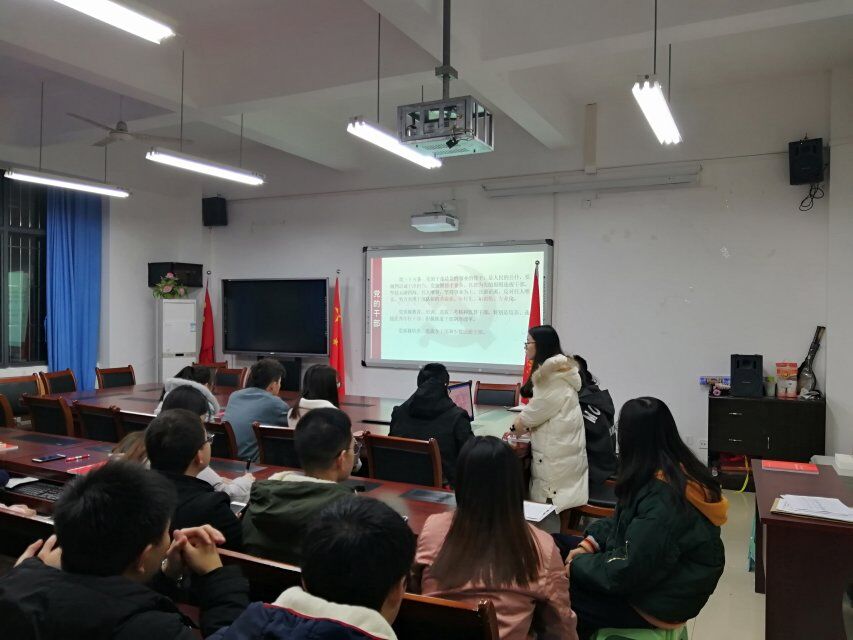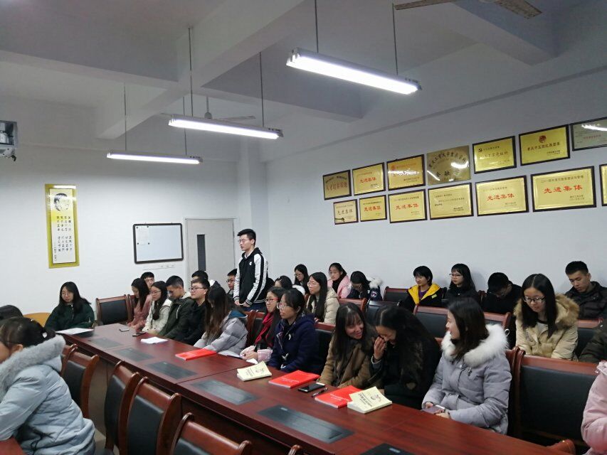 2018年11月29日下午5点40,bat365中文官方网站财政bat365中文官方网站分党委学生第一党支部在田家炳306召开了11月的第五次支部大会,会议由胡涛同志主持,学生第一党支部书记文理列席会议。本次会议的主要内容有:1.学习《中国共产党党章》第六章(党的干部)、第九章(党组);2.学习《中国共产党纪律处分条例》第九章至第十一章;3.支部书记文理对会议进行总结。