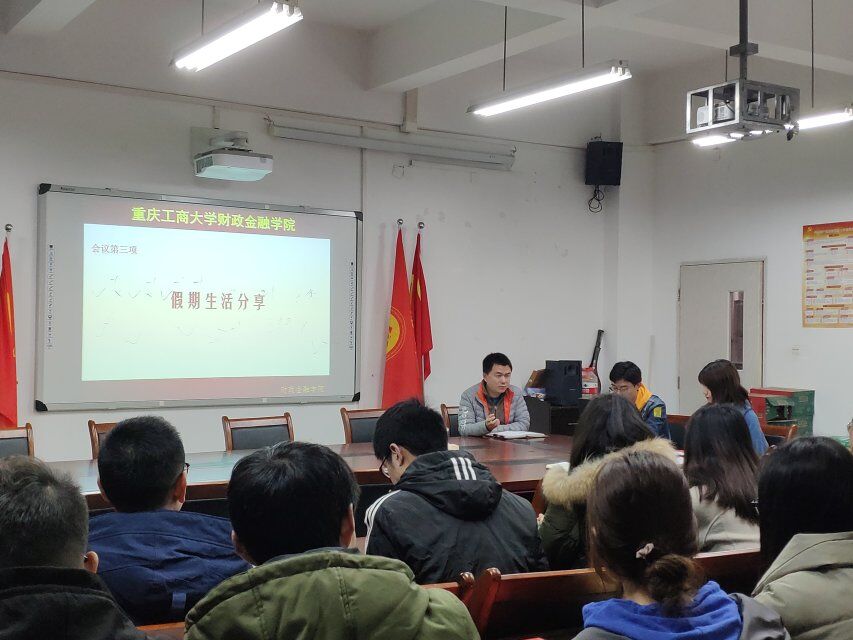 2019年2月27日下午5点40,bat365中文官方网站财政bat365中文官方网站分党委学生第一党支部在田家炳313召开了2月的第一次党日活动。本次党日活动的主题为:学用新思想、建功新时代,由李天敏同志主持,学生第一党支部书记文理、财金一支部全体学生党员以及群众代表参与本次活动。本次党日活动的共有四项议程:1.个人自评与党员互评;2.支部评议和党员测评;3.假期生活分享交流;4.支部书记文理进行总结发言。