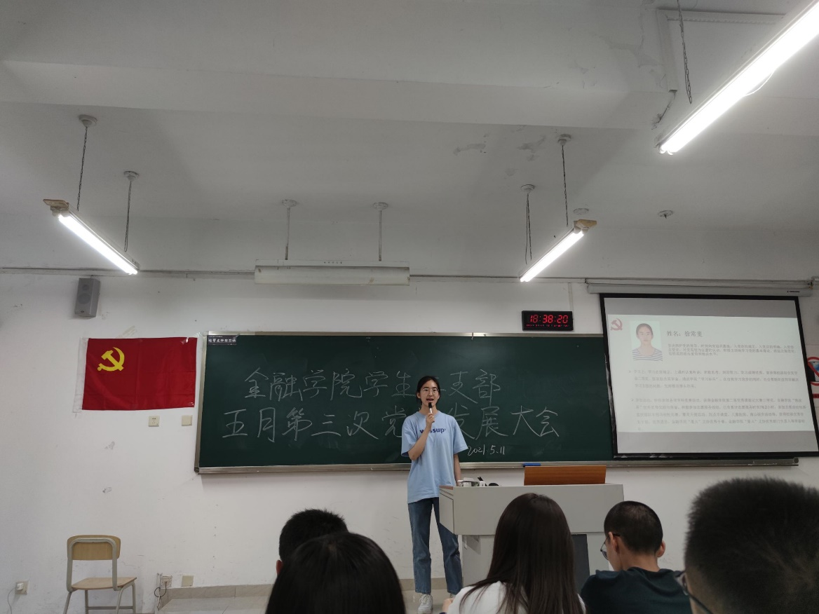 2021年5月11日星期二下午,bat365中文官方网站学生第二党支部在博智楼104教室召开了五月第三次党员发展大会。出席本次大会的成员有bat365中文官方网站学生第二支部书记乔明月老师及其他党员同志、发展对象。本次发展大会由朱钰婷同志主持。