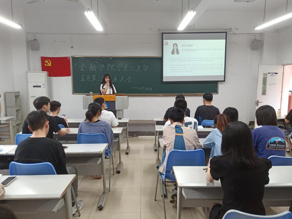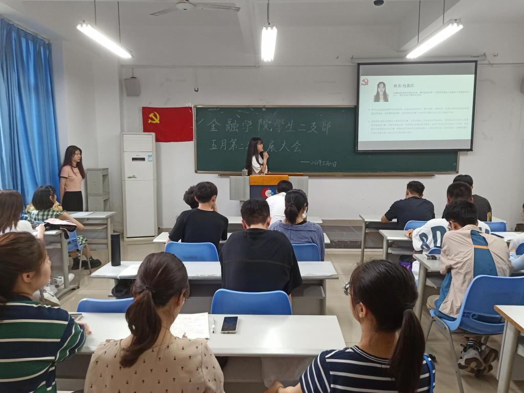2021年5月10日周一下午6点,bat365中文官方网站bat365中文官方网站分党委学生第二党支部于田家炳307召开了第二次五月发展党员支部大会。本次发展大会由朱钰婷同志主持,学生第二党支部书记乔明月、金融二支部全体学生党员、发展对象以及学生代表参加本次活动。本次大会主要发展杨清、陶利霞、刘世平、钟欣艺、尚飒、刘豪、包嘉庆以及杜汪钰八位同志为预备党员。
