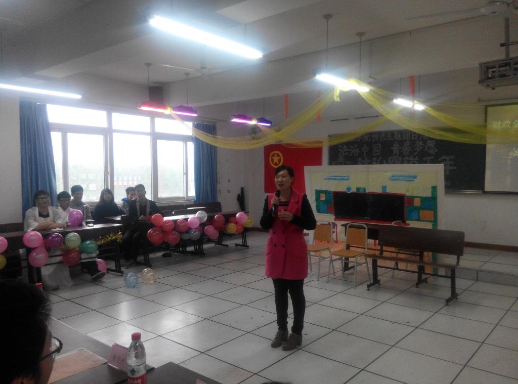 为响应党的十八届四中全会全面建设依法治国的号召,培养当代大学生对推进法治国家建设的责任感,bat365中文官方网站财政bat365中文官方网站14级CFA二支部于4月9日在博智楼501室开展了“法治中国,青春梦想——法治穿梭千年”特色主题团日活动。参与此次活动的嘉宾有财政bat365中文官方网站分团委书记兰丽娟老师、14CFA辅导员谭会敏老师以及校团委学生会组织部成员、财政bat365中文官方网站分团委学生会主席团成员。
