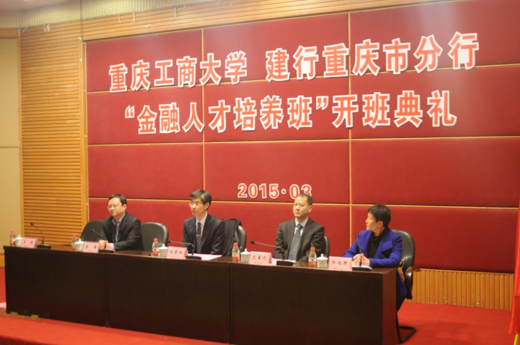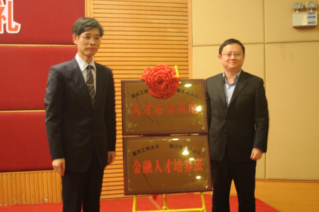 典礼共有五项议程。王栎总经理向大家介绍金融人才培养班的组建情况,她从师资力量、人才培养方式、学院管理、培训考核等方面作出详细说明,最后预祝首届建行人才班取得圆满成功、同学们学有所成。学员代表张梦婷代表全体同学对中国建设银行重庆市分行所给予的机会、对母校的苦心栽培表示衷心感谢,并表示一定会珍惜此次机会,为成为优秀的金融人才而努力学习。孙芳城校长与张希副行长共同为“中国建设银行重庆市分行金融人才培养班”、“中国建设银行重庆市分行人才培养基地”揭牌。随后,文姜元副行长对我校在过去十余年中对建行的大力支持、在共建金融人才培养班中付出的努力表示感谢,并表示“建行班”的成立是对人才培养模式的全新探索,一定会成为人才培养的新高地,为推动重庆经济发展助力。