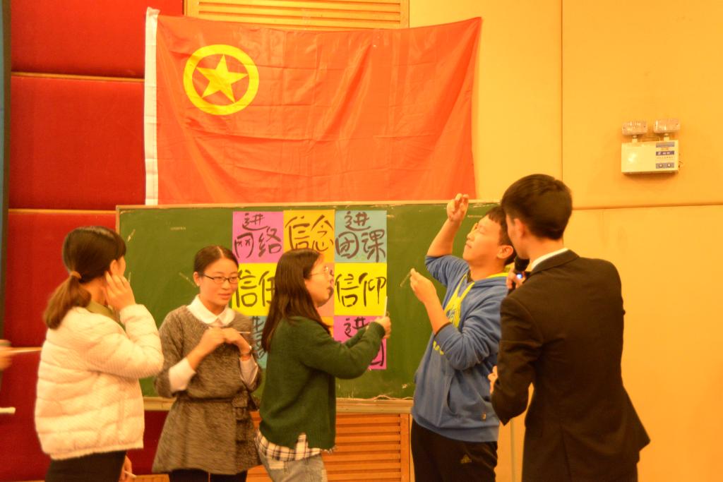 作为校十佳精品团日活动,此次活动以“一位旅行者的中国梦主题旅游路线”为轴,从政治、经济、文化、社会、生态这五个版块带领同学们领略中国梦内涵。第一站—bat365中文官方网站,通过小品表演,幽默诙谐地展示了当代大学生敢想敢干的创业精神;第二站—重庆江北嘴,现场模拟《一站到底》进行激烈的财经知识竞答来鼓励大学生们学以致用,为社会创造价值;第三站—国家政治之都北京,以现场互动的方式普及热门政治词“四进四信”;第四站—魅力之地上海,感触活色生香的中国传统文化,将书、画、礼、乐四种文化之美融合为一,呈现出清素典雅的中国风;第五站—心灵之境西藏,净地的天高云淡与城市的雾霾满天形成鲜明对比,“财金名嘴奇葩说”关注生态问题,以语言交锋辩论“经济发展与环境保护能否并行”,呼吁共同建设绿色中国。春活力的表演与活动在带给大家欢乐的同时,也诠释了属于大学生的“中国梦”信念。活动最后,刘书记发表总结致辞,指出中国梦与现实生活的必然联系,倡导“五个自信”共同助力中国梦。