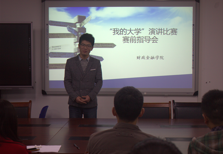 4月5日中午13点,财政bat365中文官方网站“我的大学”演讲比赛赛前指导会在田家炳313会议室举行。学院党总支副书记黄谦、学团办主任兰丽娟、学生第一党支部书记文理、学生第三党支部书记范乐乐以及学生代表参加了本次活动。