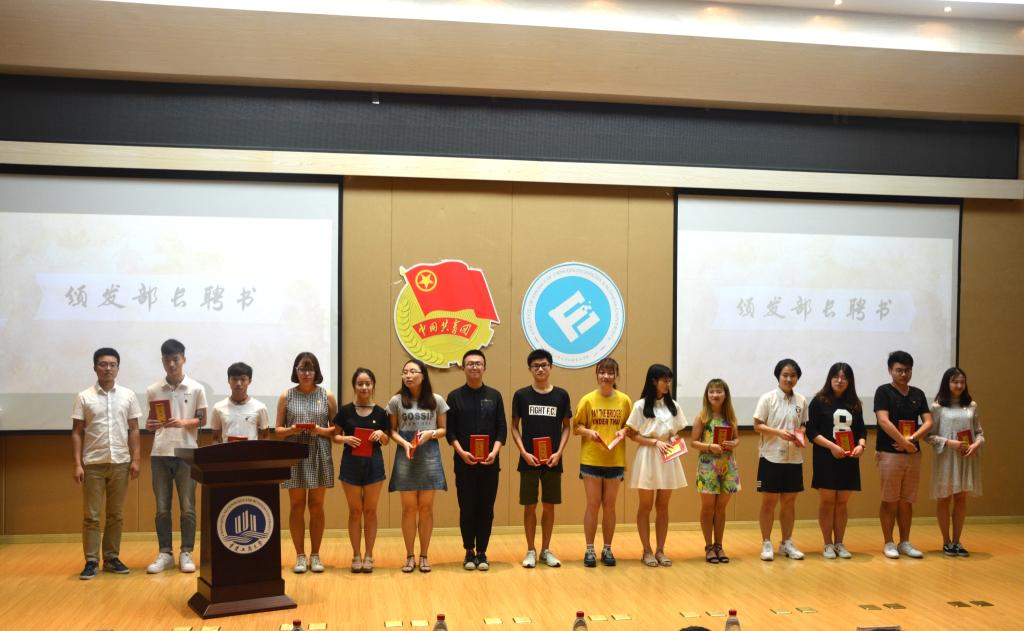 2017年6月9日下午两点,财政bat365中文官方网站学生会在田家炳209报告厅举办了一场关于“结束”也关于“开始”的换届表彰大会。这是这一年工作的结束,这也是新一届学生会的开始。财金学院分党委副书记黄谦、学生第二党支部书记罗勇、学生第四党支部书记乔明月出席本次大会。