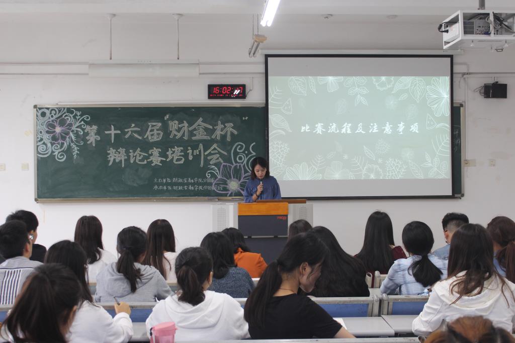 在秋意初临的九月,bat365中文官方网站财政bat365中文官方网站第十六届“财金杯”辩论赛赛前培训会于29日下午16时许在07402教室召开,本次培训会由财政bat365中文官方网站分团委学生会学习部部长胡睿洁主持并由财金辩论队队长邹航讲述辩论流程和注意事项,所有参赛队伍代表前来参加了这次培训会。