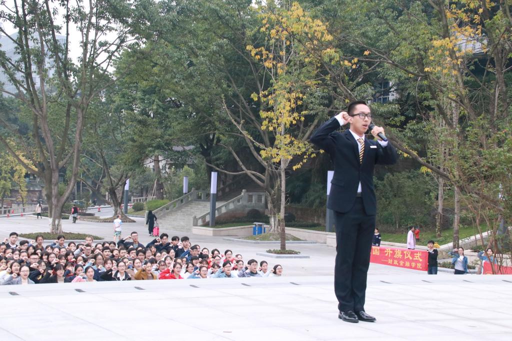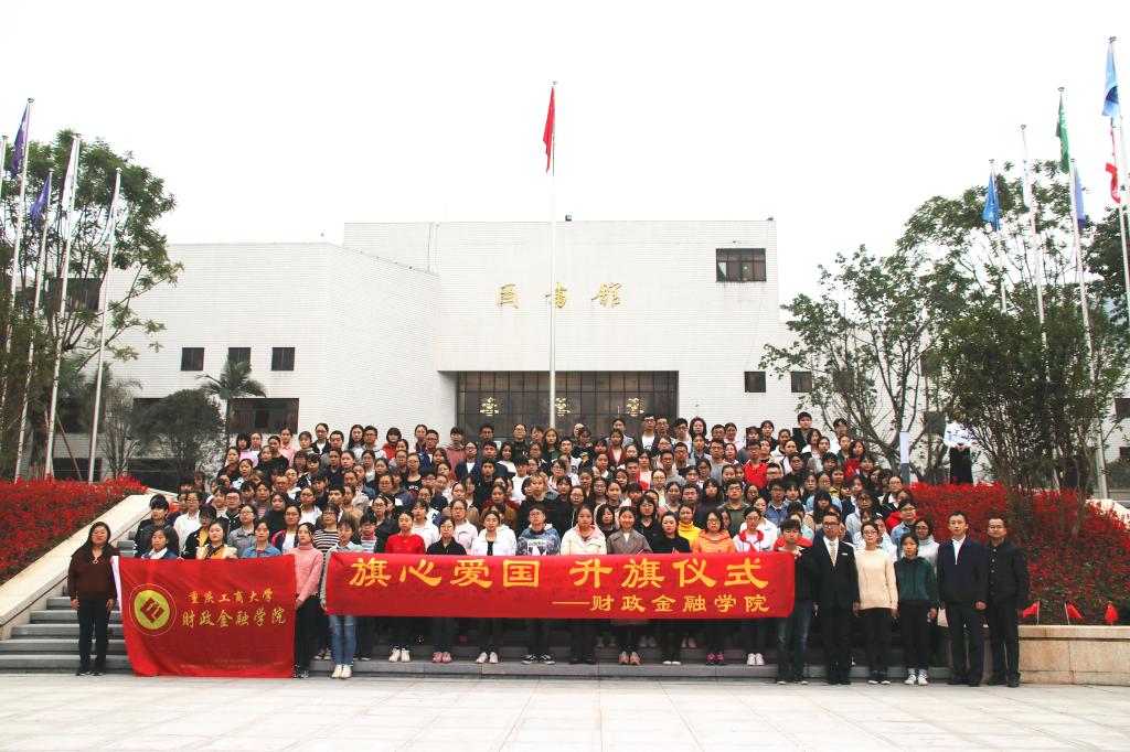 为了进一步践行党的十九大精神,弘扬“中国梦”,提高同学们的思想道德素质,激发广大师生的爱国之情,2017年11月13日清晨,由党委学工部主办,财政bat365中文官方网站承办 的“旗心爱国”升旗仪式于校前广场隆重举行。学工部、学生处石世明处长,财政bat365中文官方网站分党委黄谦副书记,学院党政办主任陈春洁老师,辅导员杨宁老师,乔明月老师以及财政bat365中文官方网站200余名入党积极分子参加此次升旗仪式。