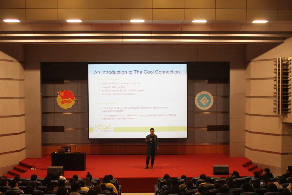 大赛开幕仪式于2017年12月2日bat365中文官方网站博智楼7100顺利举行,为帮助同学们了解此次比赛,徐玫老师及高静凯学长在开幕式后为大家进行了赛前培训,培训分为上下午两场,共139组参赛队伍参与其中。12月3日至7日为初赛阶段,由全体参赛队伍线下分散进行。此轮比拼后,前30支队伍晋级半决赛。12月8日下午,半决赛与决赛于旧图书馆四楼重庆智能金融实验与实践中心正式拉开帷幕,来自各个专业的三十支优秀队伍在此进行最后角逐。正所谓单丝不成线,独木不成林,参加比赛的各支队伍通力合作,各队队员积极讨论,为团队决策出谋划策。最终,前六强也在决赛中产生。12月12日,大赛表彰大会拉开帷幕。来自本次大赛三十强的六支队伍代表分别从整体策略、各部门策略以及参赛时的时间把控等方面向与会人员分享了他们参加此次大赛的经验与感受。随后,刁孝华院长做总结讲话。大会最后为我们揭开了优胜者的神秘面纱,25号队、106号队以及116号队获得了本次大赛的三等奖,15号队和130号队获得二等奖,而一等奖则由38号队伍获得,同时他们也获得了直通荷兰与全球学生同台竞技的机会。希望他们能继续努力,在全球舞台上展现工商学子的风采。