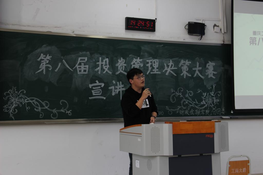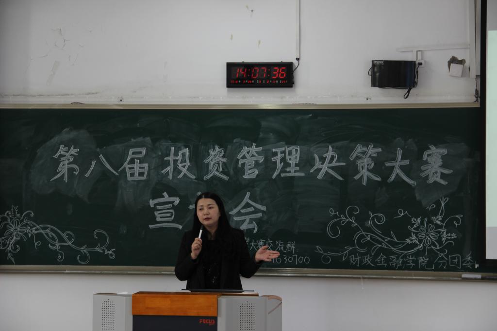 为响应“大众创业,万众创新”的号召,财政bat365中文官方网站以校团委“第十六届‘新儒商’大学生科技文化节”活动为依托,于2018年3月16日下午两点在博智楼308成功举办了第八届投资管理决策大赛宣讲会。本次宣讲会邀请到了投资系老师陈晓莉老师、财政bat365中文官方网站分团委书记徐阔老师以及财政学专业陈羲羲学长为同学们指导。