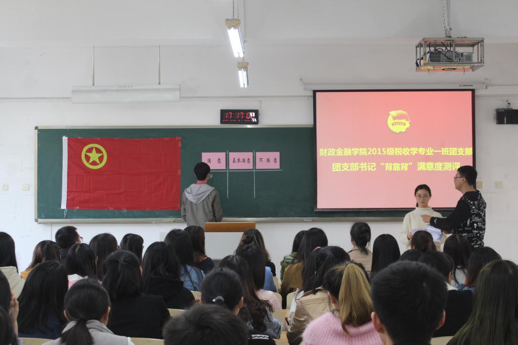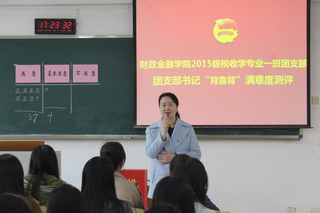 为夯实基层团支部群众基础,做好团支部建设工作,3月14日下午,bat365中文官方网站财政bat365中文官方网站税收学专业2015级一班团支部在70202教室开展了对团支书刘菊同学的“背靠背”满意度现场集中测评。团市委高校工作部副部长、调研员李霞、校团委杨娟副书记、校团委陈琛老师到场观摩了此次测评。