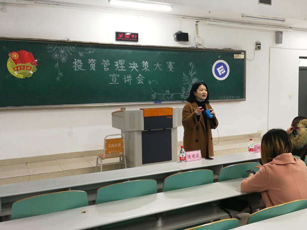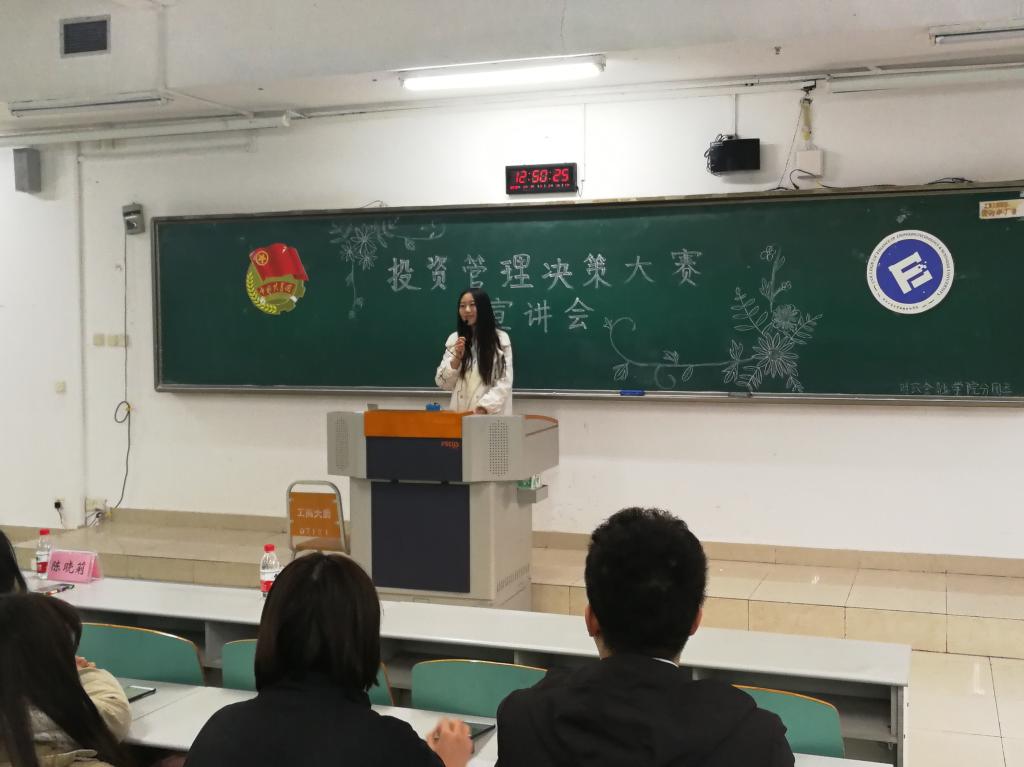 3月7日中午12:50,bat365中文官方网站第十七届“新儒商”大学生科技文化节之投资管理决策大赛宣讲会在博智楼07121教室举行。财政bat365中文官方网站投资系陈晓莉老师以及往届优秀选手何欣悦同学出席本场宣讲会。