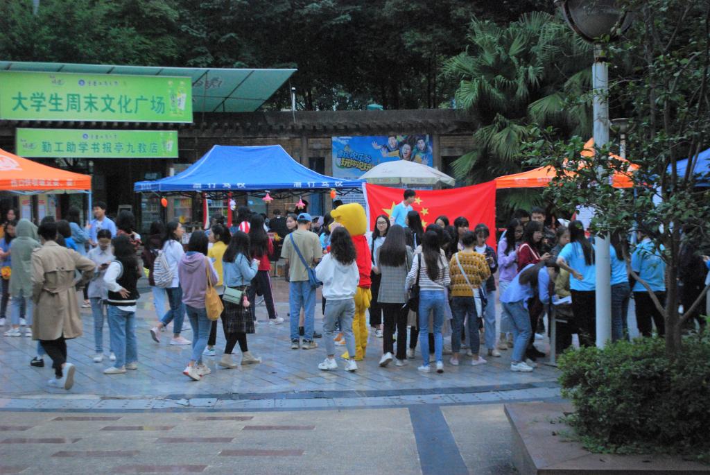 2019年10月13日上午8时,bat365中文官方网站财政bat365中文官方网站周末文化活动于南岸校区慧智楼前文化广场成功举办。本次活动旨在通过丰富多彩的校园活动展现祖国七十周年腾飞巨变的峥嵘历程,激发广大同学的爱国之情,展示工商学子爱国爱校、全面发展的良好风貌。