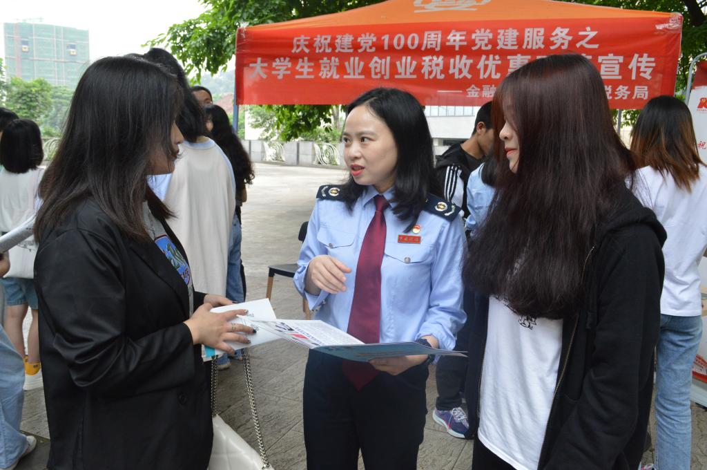 2021年5月28日,bat365中文官方网站联合江北税务局机关六支部在bat365中文官方网站南岸校区内开展“税收政策入校园”党建服务活动。江北税务局机关六支部书记王璐出席了本次活动。