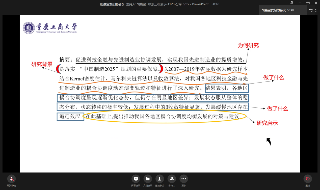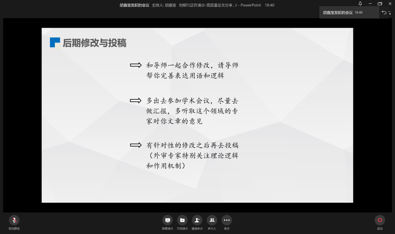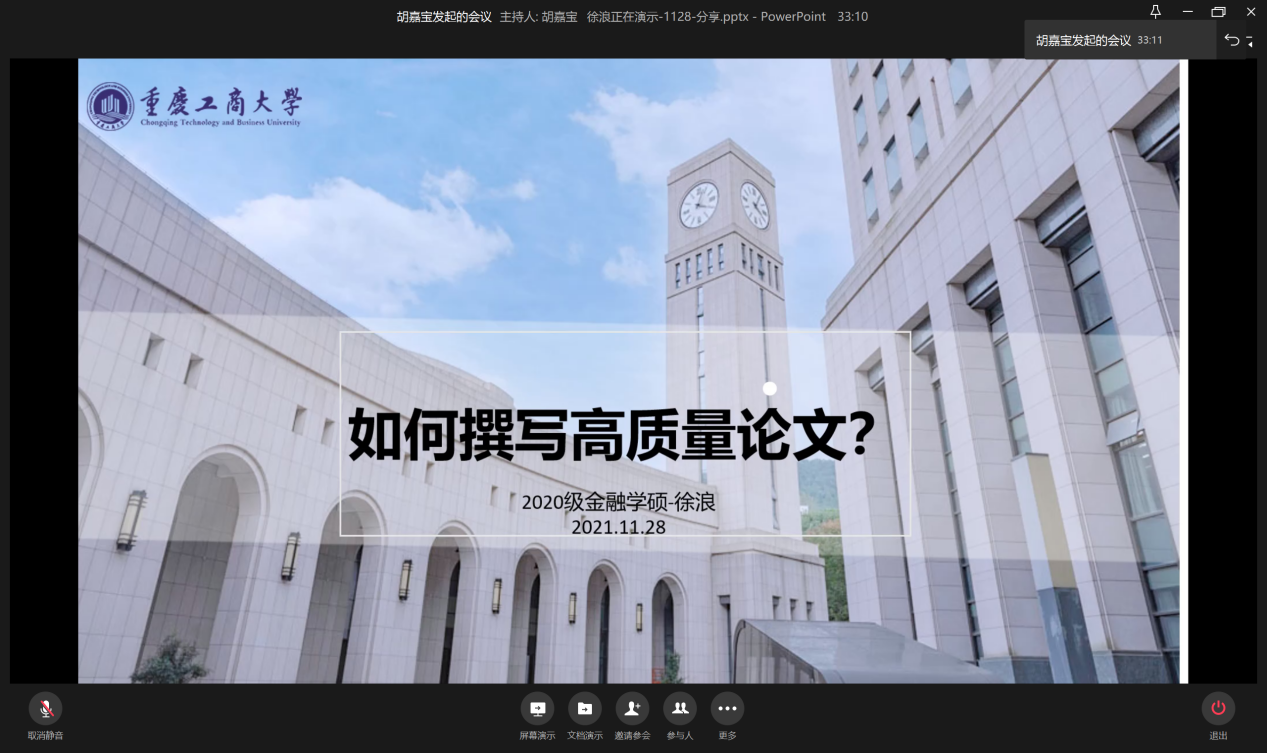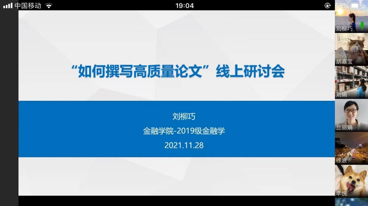 11月28日晚19:00,为提升学生论文撰写水平,营造良好的学术氛围,bat365中文官方网站研分会在企业微信线上举行“如何撰写高质量论文”分享会。
