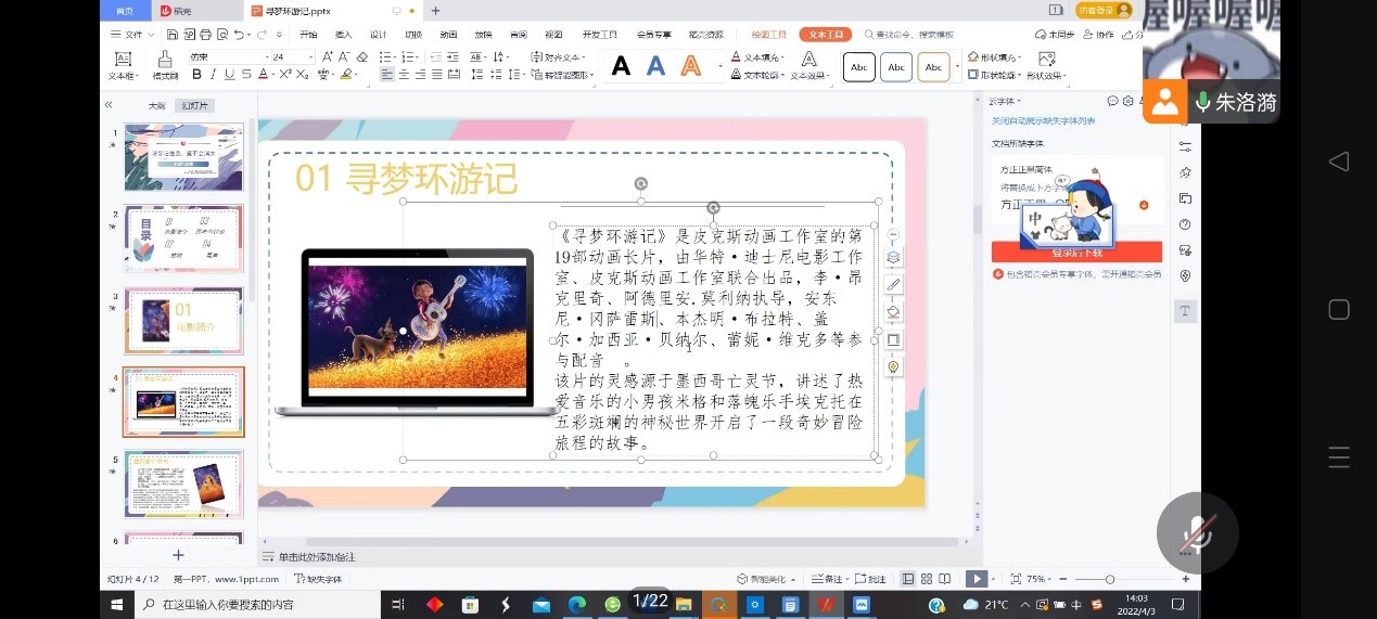 清明节是我国传统的重大节日,扫墓祭祀、缅怀祖先,是中华民族自古以来的优良传统,不仅有利于弘扬孝道亲情、唤醒家族共同记忆,还可促进家族成员乃至民族的凝聚力和认同感。但在节日来临之际,难免有同学思念已故亲人,产生悲观、消极的情绪。为促进同学们树立积极向上、乐观勇敢和正确面对人生的心态,同时为学生搭建起锻炼心理承受能力、提高心理素质水平,2022年4月3日下午,bat365中文官方网站心理工作站通过企业微信线上平台举办了一场以“请你记住我,爱不会消失”为主题的电影展播活动。