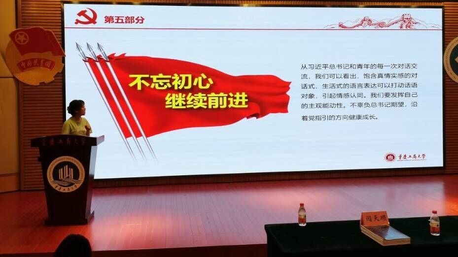 从习近平总书记和青年的每一次对话交流中不难看出他饱含真情实感的对话式、生活式的语言表达,深深打动了每一位同学,并引起了情感认同。同学们要发挥自己的主观能动性。不辜负总书记期望,沿着党指引的方向健康成长。