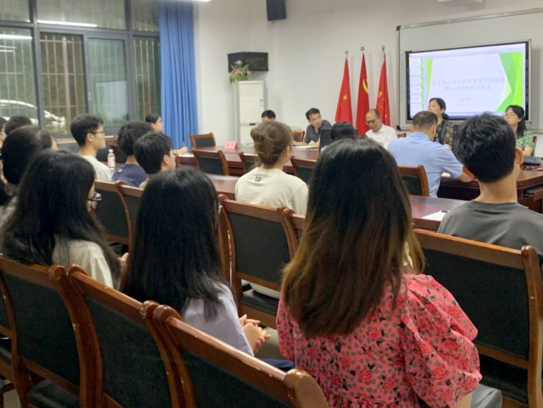 心灵健康伴我行,花开香满溢校园。正值学校七秩芳华之际,为进一步增强大学生的综合心理素质,开展心理健康教育,2022年6月9日上午10点30分,bat365中文官方网站于田家炳书院317会议室开展了大学生心理危机突发事件的处置暨心理健康研讨会。学院全体领导高度重视心理健康建设,分党委书记王建明、院长王兰、分党委副书记余新、副院长庞楷、王韧等领导出席活动,bat365中文官方网站全体辅导员、部分行政老师和全体心理委员参加会议。