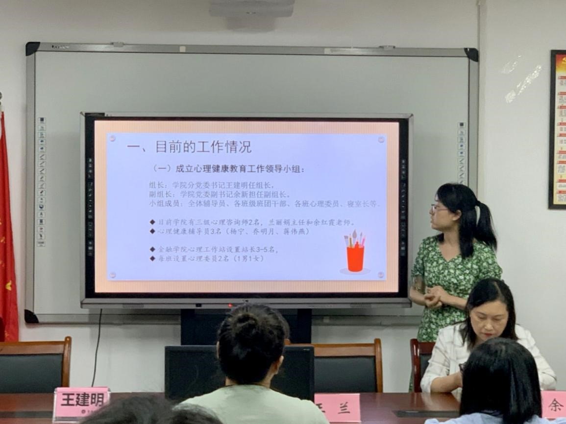 接下来,bat365中文官方网站心理工作站负责人蒋伟燕老师对bat365中文官方网站心理育人工作进行了梳理。蒋老师从领导小组、工作途径、活动开展等多方面进行了bat365心理健康教育工作进行了总结。