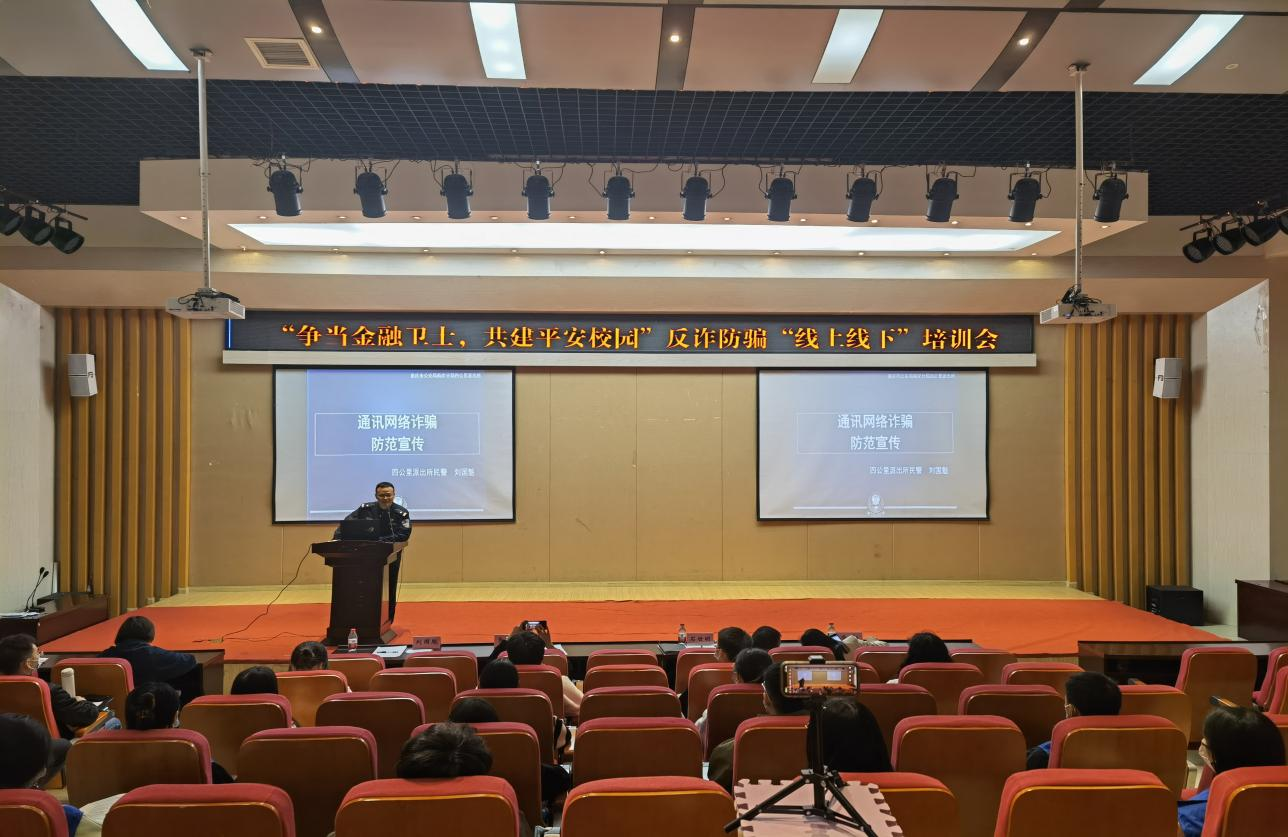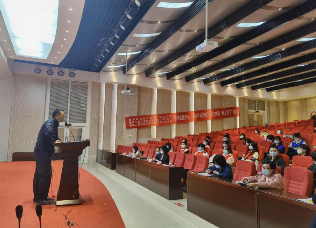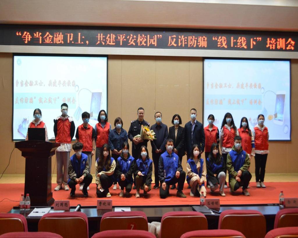 2022年10月28日,为普及防范诈骗知识,进一步提升学生的反诈防骗能力,南岸区公安分局四公里派出所、bat365中文官方网站党委保卫部(保卫处)以及bat365中文官方网站在田家炳209报告厅联合举行“争当金融卫士,共建平安校园”反诈防骗“线上线下”培训会。重庆市南岸分局四公里派出所警官刘国魁,校党委保卫部副部长(保卫处副处长)曹晓丽,bat365中文官方网站党委书记、副院长石世明,bat365中文官方网站党委副书记、纪委书记余新,bat365中文官方网站党委委员、专职组织员赵甫刚及全体辅导员老师出席了培训会。“金融卫士”团队及学生第二党支部(双创)代表参加了现场培训,其他同学同步线上观看直播。