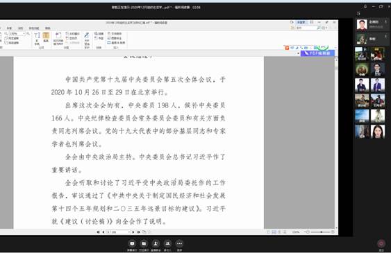 根据学校12月组织生活和政治理论学习安排,12月20日上午,bat365中文官方网站教工第一支部召开线上支部大会,学习《中国共产党第十九届中央委员会第五次全体会议公报》。会议由支部书记黎毅主持。