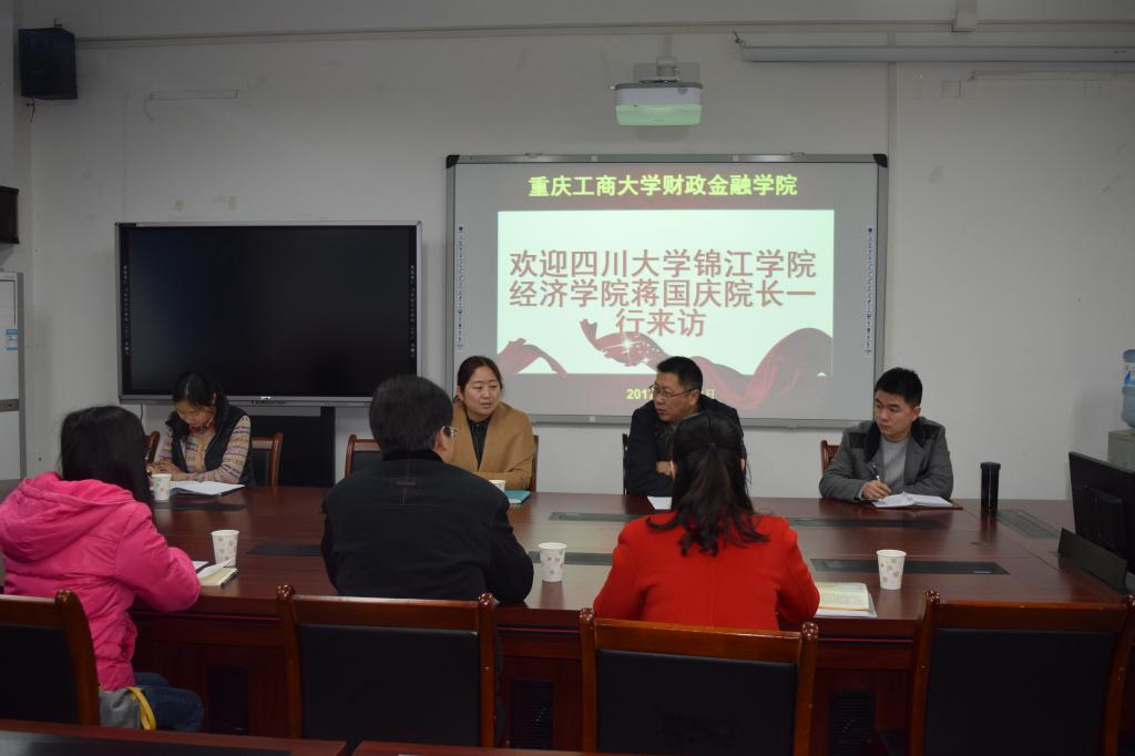 2017年3月23日上午9:00点,四川大学锦江学院经济学院院长蔡国庆教授等三人一行到bat365交流访问,bat365副院长王兰教授、投资系教师毛跃一教授等人进行了亲切接待,双方共同探讨了CFA办学经验等事宜。