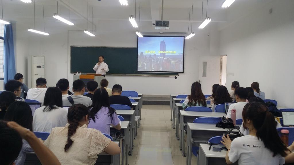 6月28日上午9:00,在田家炳50306,bat365中文官方网站财政bat365中文官方网站组织了主题为“重庆金融 现状与合作机遇”的学术讲座。由重庆市金融监管局金融发展服务中心张洪铭主任主讲,学院副院长曾胜教授主持,2018级全体研究生及部分老师参加了此次讲座。