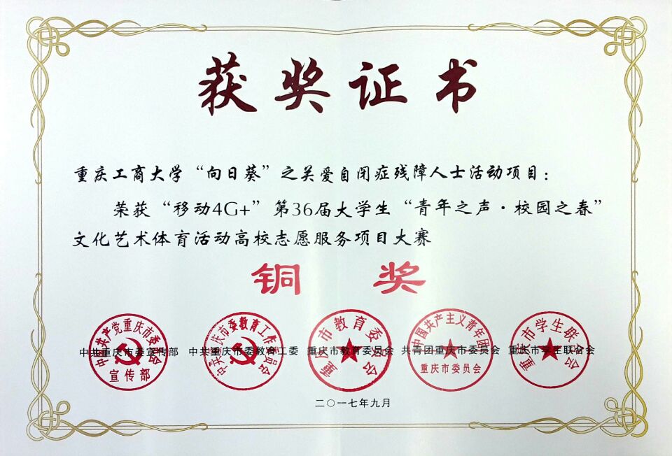 近日,bat365“向日葵”之关爱残障人士活动项目获“移动“4G+”第三十六届大学生“青年之声 校园之春”文化艺术节体育活动高校志愿服务项目大赛铜奖。这无疑是对参与志愿服务项目的志愿者的一种鼓励,更是对“星火”义协的极大肯定!